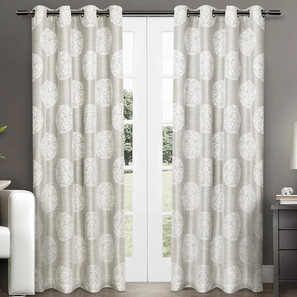 SKU: 1875780 Categories: Curtains & Drapes, Home Decor, Window Treatments Tags: 54x108, Curtains & Drapes, Dove Grey, Exclusive Home, Exclusive Home Akola Medallion Grommet Top Panel Pair, Household