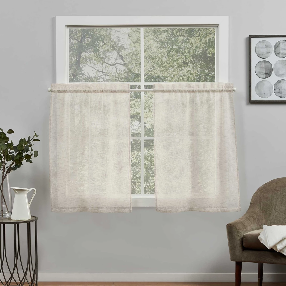 The Belgian sheer tier curtain panels by Exclusive Home Curtains are made with a lightweight and airy, linen-like fabric that allows light to flow through your space. This curtain panel set works perfectly for small windows in your kitchen, foyer, closet, or bathroom. The rod pocket top fits up to a 0.5-in. diameter curtain rod for easy hanging. Coordinate with the Belgian Tailored Valance and Belgian curtain panels or used on its own (sold separately). Machine washable for easy care. Model: EH8452-01-2-24R.