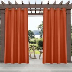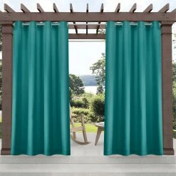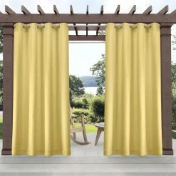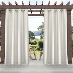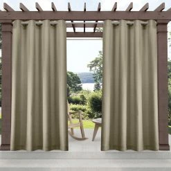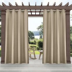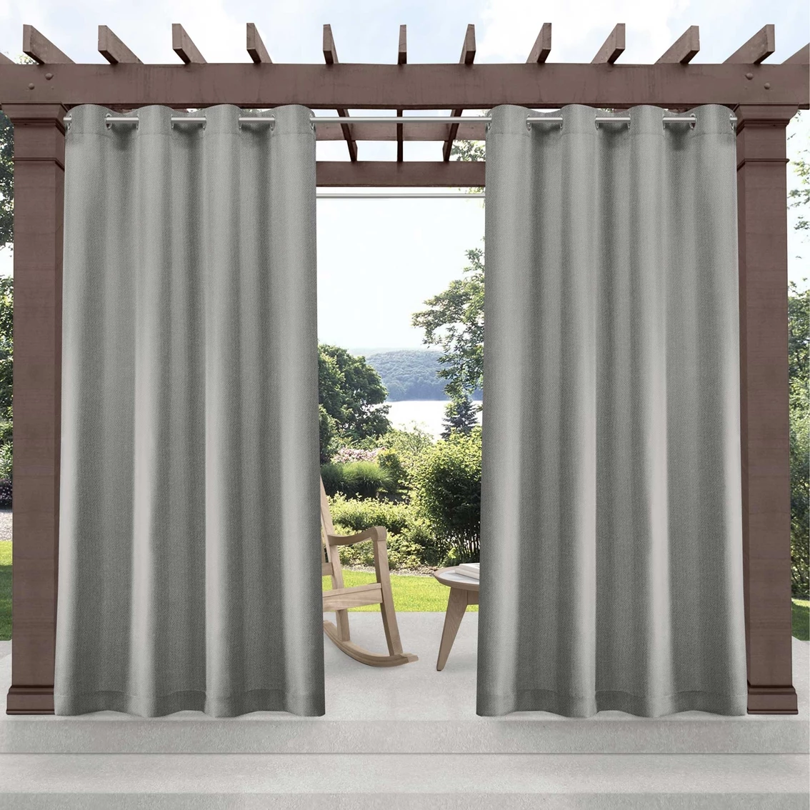 The Biscayne indoor/outdoor dyed two tone yarn grommet top curtain panels from Exclusive Home bring extra fashion and style to any outdoor living space. These polyester panels, with a heavyweight and textured feel, drape beautifully. The panels offer a UV Ray protectant and are mildew resistant. These beautiful panels are perfect for blocking the sun, creating more privacy, or setting the mood as the ultimate finishing touch to any pergola, cabana, covered patio, gazebo, deck, beach home, or any outdoor extension of your home.