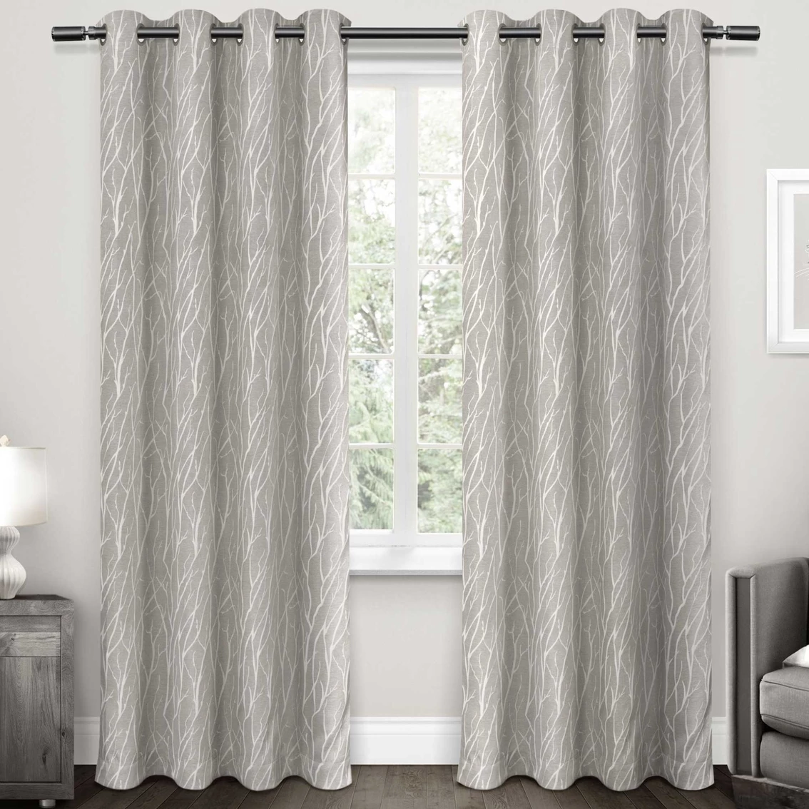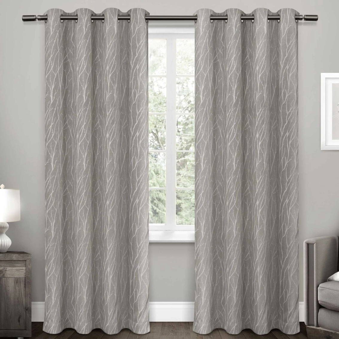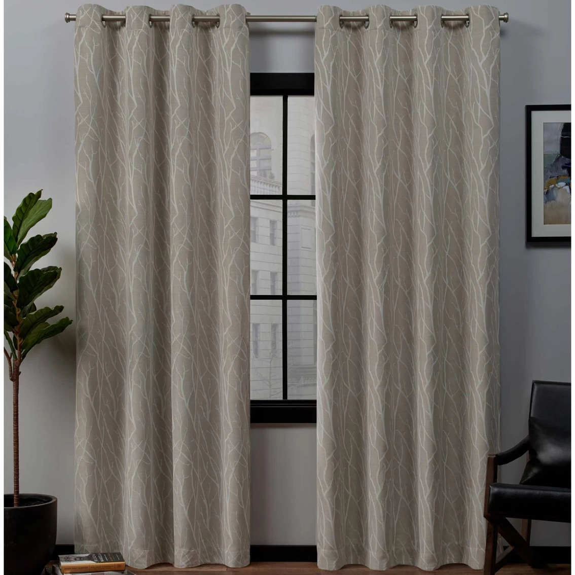 These Forest Hill curtain panels by Exclusive Home provide a contemporary, yet natural look to any room in your home. The branch motif design is printed on a lush polyester fabric that has the look and feel of linen. These panels are interwoven with room darkening blackout insulation provided by Light Block and Thermax technology. Designed to block light and preventing harmful UV rays from reaching your floors and furniture, the panels also prevent cold or heat transfer from the outside, increasing the energy efficiency of your home.