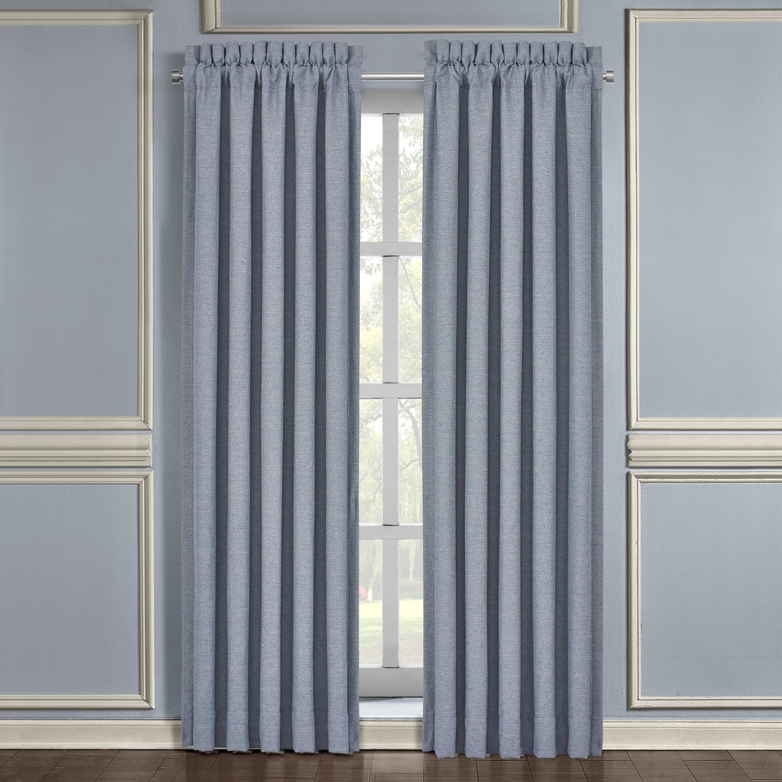 The Aurora Window Panel Pair by J. Queen New York is simple yet sophisticated and adds luxurious elegance to your home decor. This beautiful woven solid curtain features a blue chambray look, complementing the Aurora Bedding Set by J. Queen New York. These lined panels include tiebacks to create an open airy look and are the perfect finishing touch to complete an updated traditional look. The curtains will keep your room cool and comfortable by filtering light and providing ideal shade. The 3-in. header and 3-in. rod pocket make these panels easy to hang. Pair with the Aurora Window Valance to complete the collection. Model: 255900684PR.