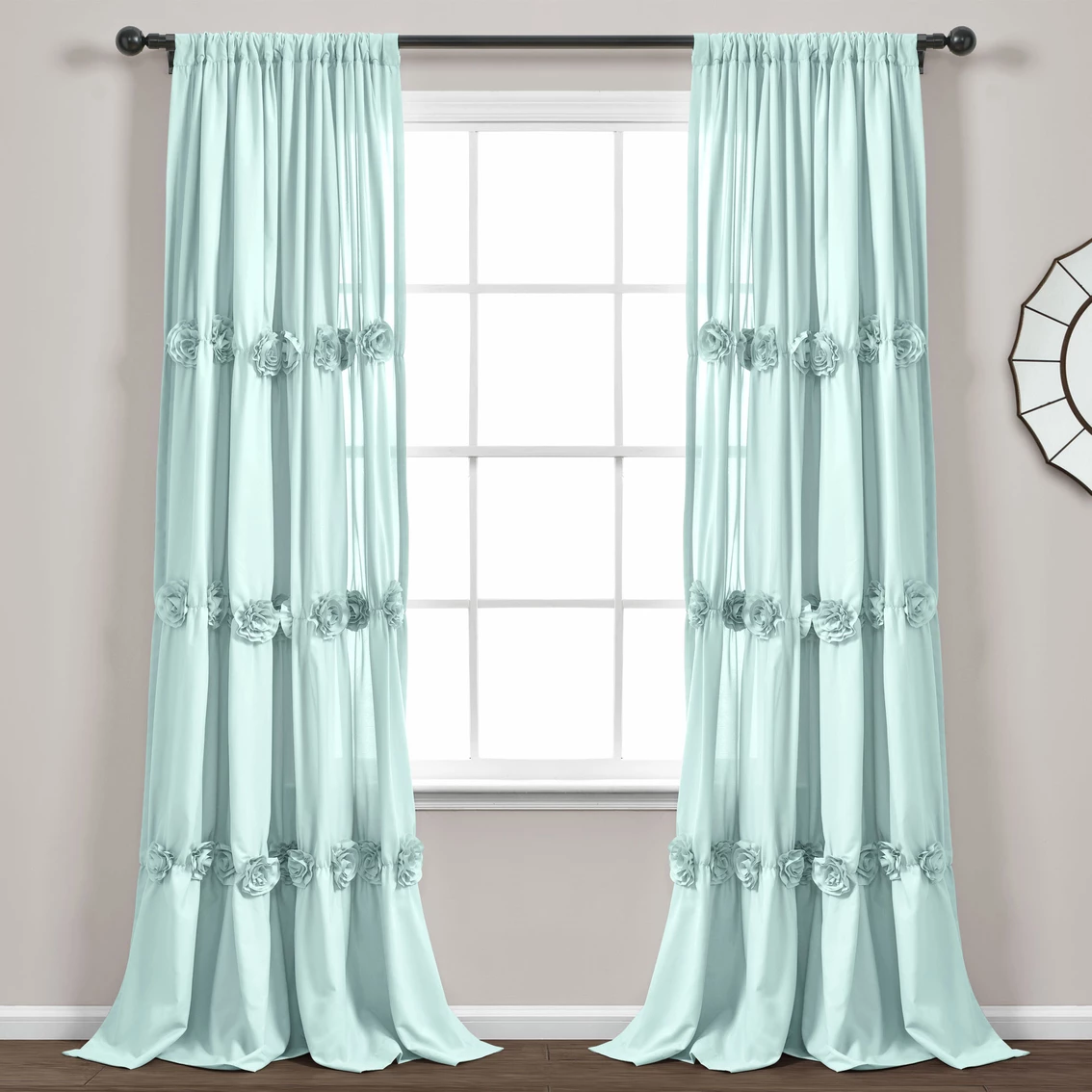 With the feeling of a rainbow, this boho style window panel from Lush Decor brightens your home with aesthetic patterns and countless colors in each of her many arcs. From serene floral designs to twirling patterns, this pattern truly has a story to tell in each row. Give your windows a romantic, shabby chic look with these window panels featuring rows of hand crafted flower embellishments. These curtains will let in plenty of natural light while providing ample privacy from neighbors. Sold by the single panel. Measures 40 x 84 in. Model: 16T005089.