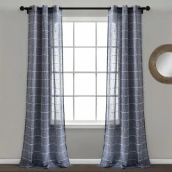 Outlet ๐คฉ Lush Decor Farmhouse Textured Grommet Sheer Window Curtain Panels 2 Pc. Set ๐