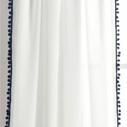 The Lush Decor Pom Pom Single Window Curtain Panel is simple and elegant. The pom pom tassels lining the curtain sides adds the perfect touch of pizzazz to the solid color window curtains. Perfect touch in kids’ to adults’ bedrooms. Featuring a 3-inch rod pocket for easy installation of window panel. Measures 50 x 63 + 2 inches. Navy. Model: 16T004293.