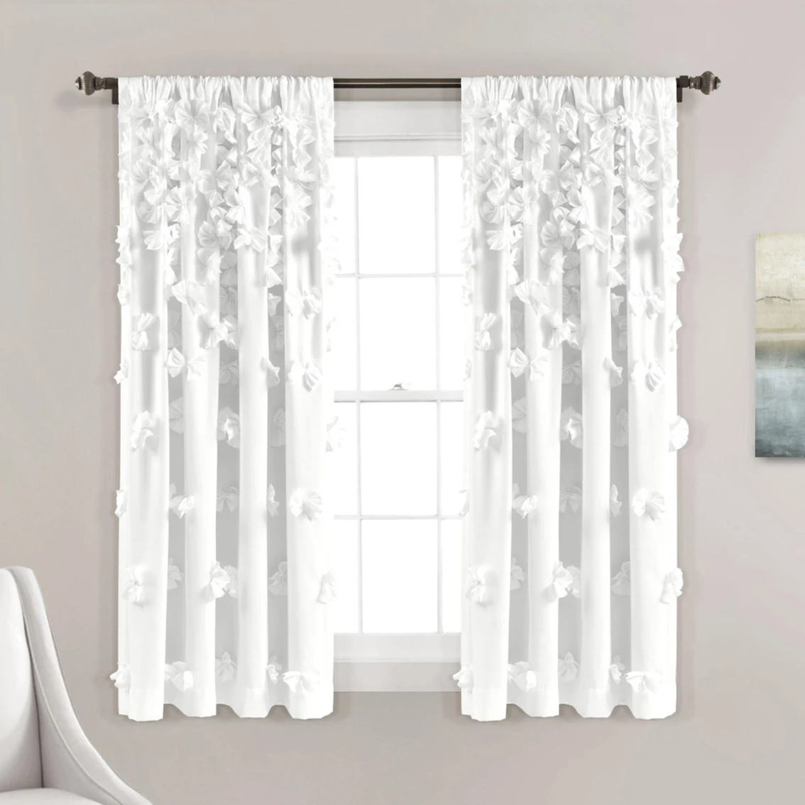 The beautiful cascading flower details of this Riley Window Curtain Panel from Lush Decor add a delicate feminine touch to any room. This panel is sure to brighten up your living space with its stylish charm and allow in plenty of light while still providing privacy. Single panel. Model: 16T007690.