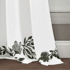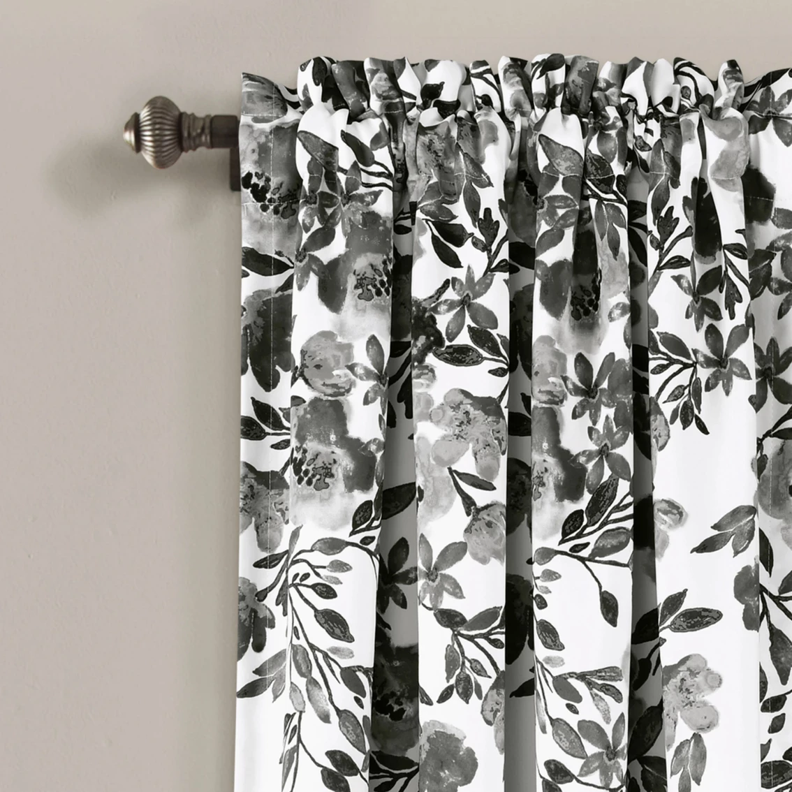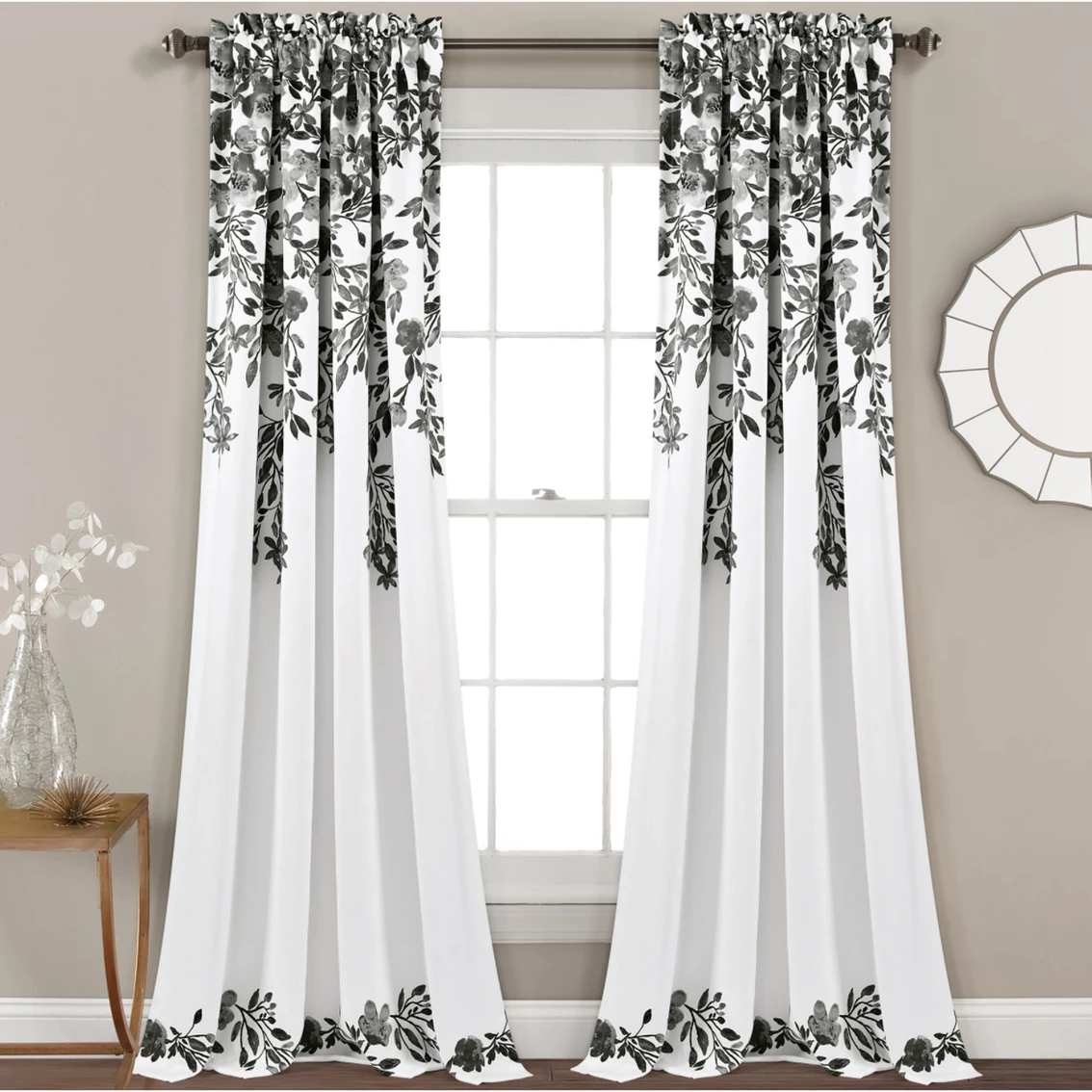 Update the look of your home with this beautiful Lush Decor Tanisha Room Darkening Window Curtain Panels Set. The floral style vine printed on light blocking fabric appears to be climbing from the top of the panel down toward the middle of the panel. Two panel set, 52 x 84 + 2 inches each. Black/White. Model: 16T006833.