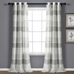 The thick stripes of color on these yarn dyed sheer curtains give the look of a patchwork fabrication. The look easily fits into many decor themes. The sheer fabric will let in plenty of natural light to brighten your bedroom, living room or home office. Model: 16T004783.