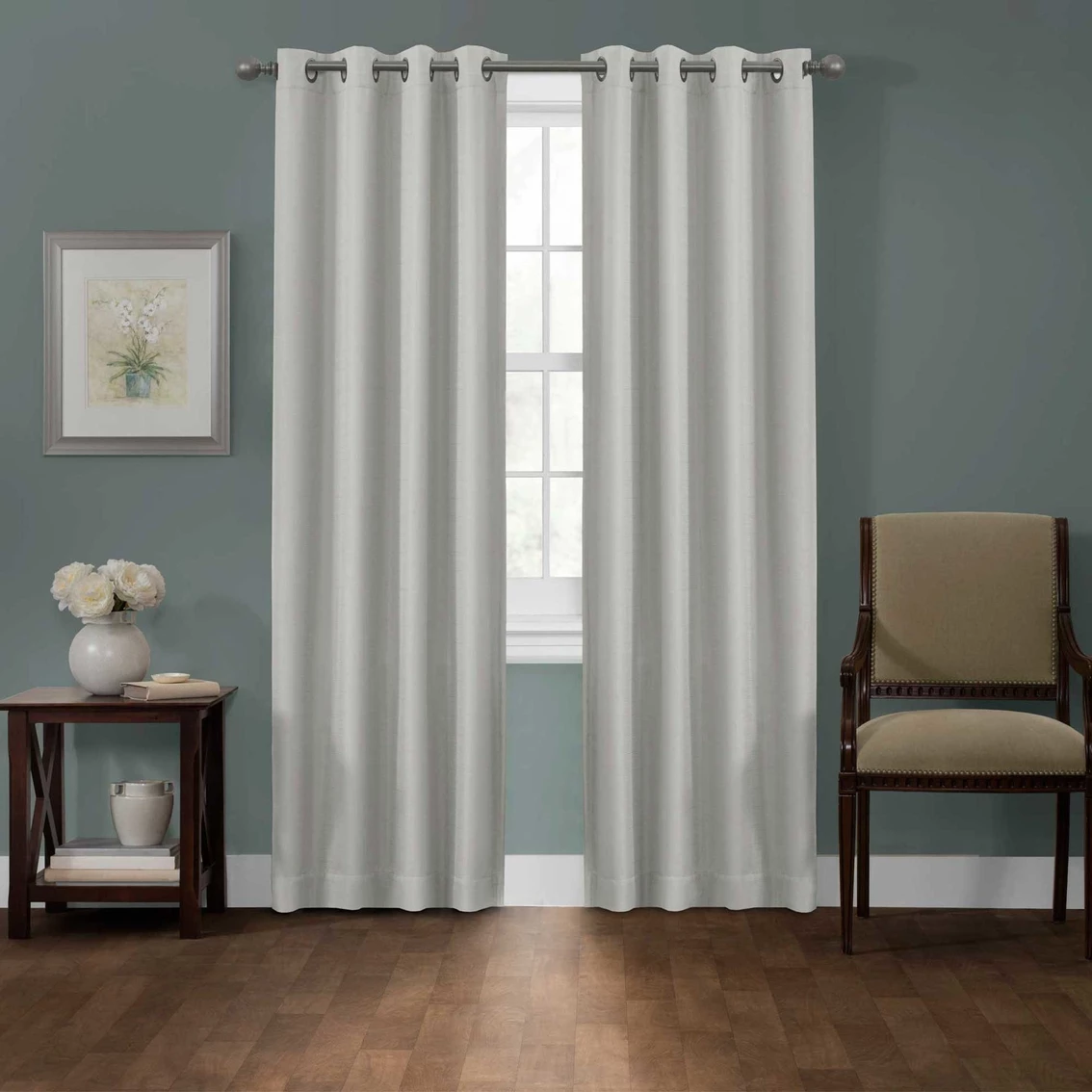 These Maytex Sheridan 100% Blackout Window Panels will transform day into night in your living room, bedroom, nursery or any room in your home where you want to prevent light from entering. Besides blocking out 100% of light, these window panels will help save energy costs and reduce noise. With a woven basket weave pattern on solid textured fabric, Sheridan panels will give your room a fresh look and feel. Their grommet panel construction makes them easy to install. One panel is included per package. (For window widths up to 33 inches, use one panel; for widths from 34 to 66 inches, use two panels; see size chart for larger widths.) Model: 5833.