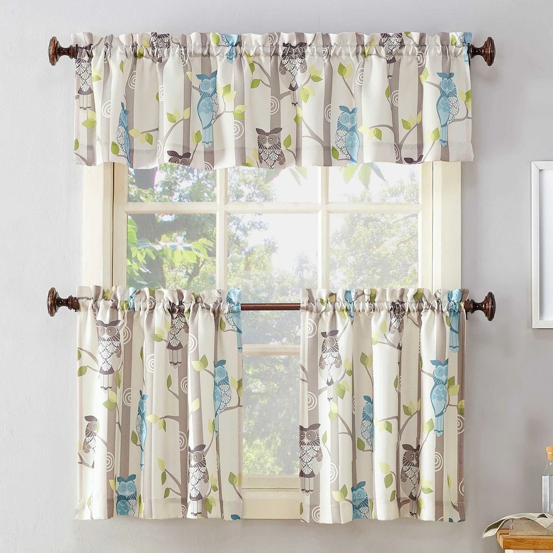 Complete your whimsical owl theme with these hoot tier curtains from no 918. Great look for kitchens, bathrooms, or any living space. Easy to hang. Valance and tier pairs sold separately. Style: 45084.