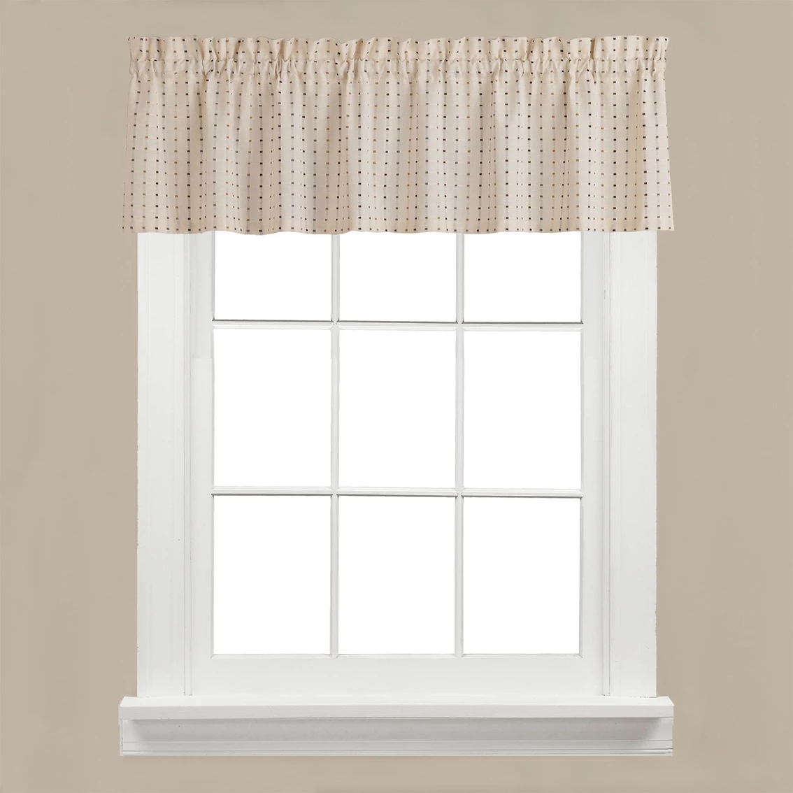 Hopscotch is a cream valance woven with gray, chocolate brown and tan threads to create a square hopscotch look. Hopscotch is perfect for a calming look in any room.