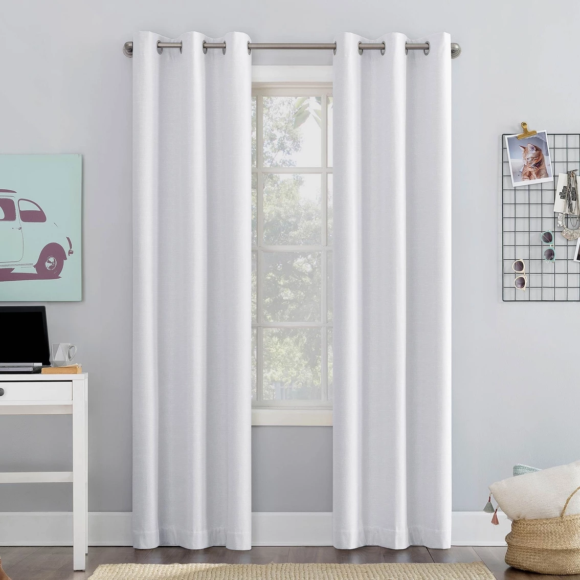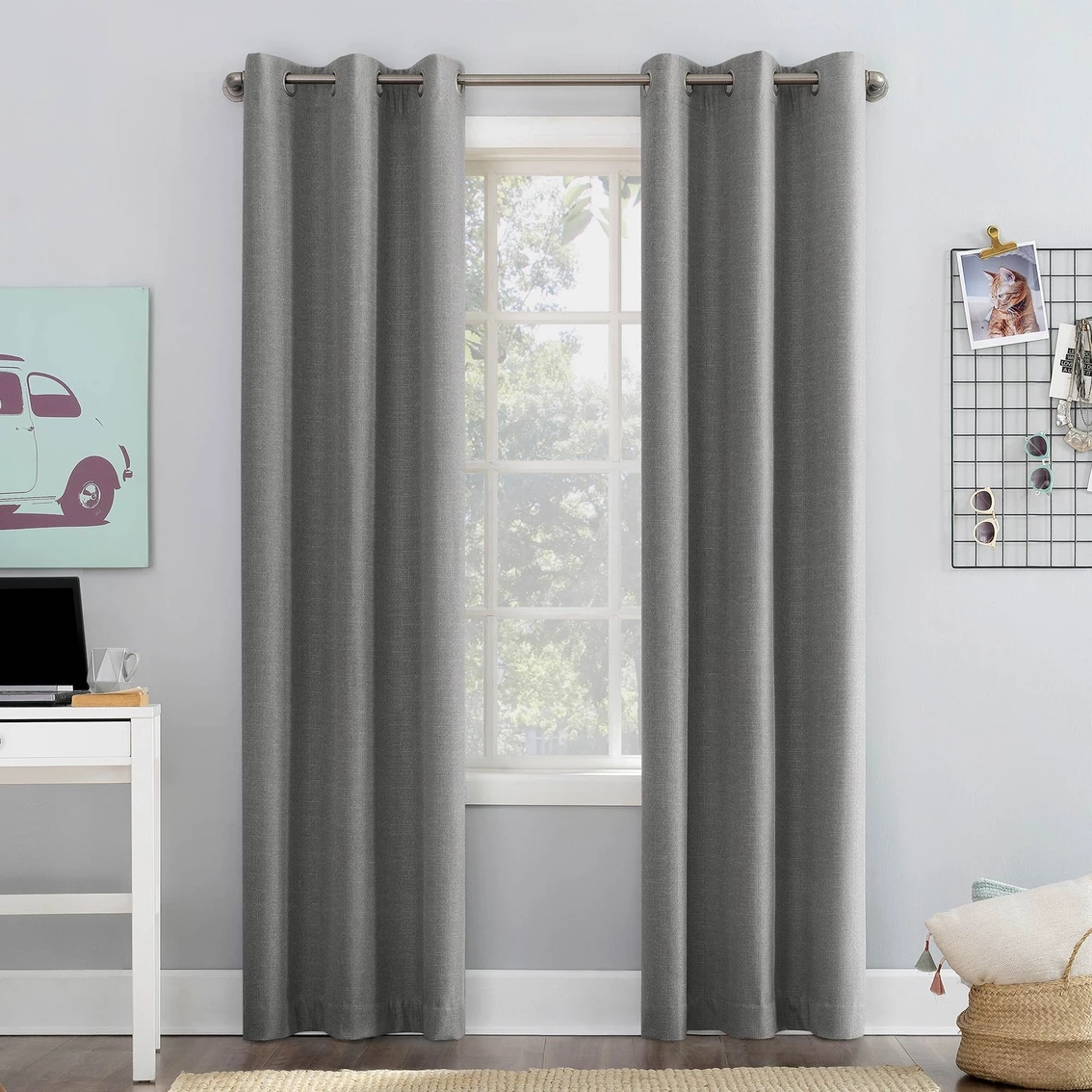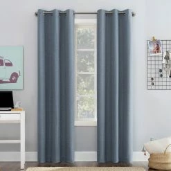Add cozy vibes to your space with the unique slub texture detail of Sun Zero Cody 100% Blackout Grommet Curtain Panel. Sun Zero Generation Blackout technology is lab tested to block out 100% of light, reduce outside noise by up to 55%, and decrease energy lost through your windows by up to 35%. Fleece insulation keeps inside air cooler in the summer and warmer in the winter. Built-in grommets allow for easy slide-through installation on curtain rods up to 1.5 in. in diameter. Style: 029927596359.