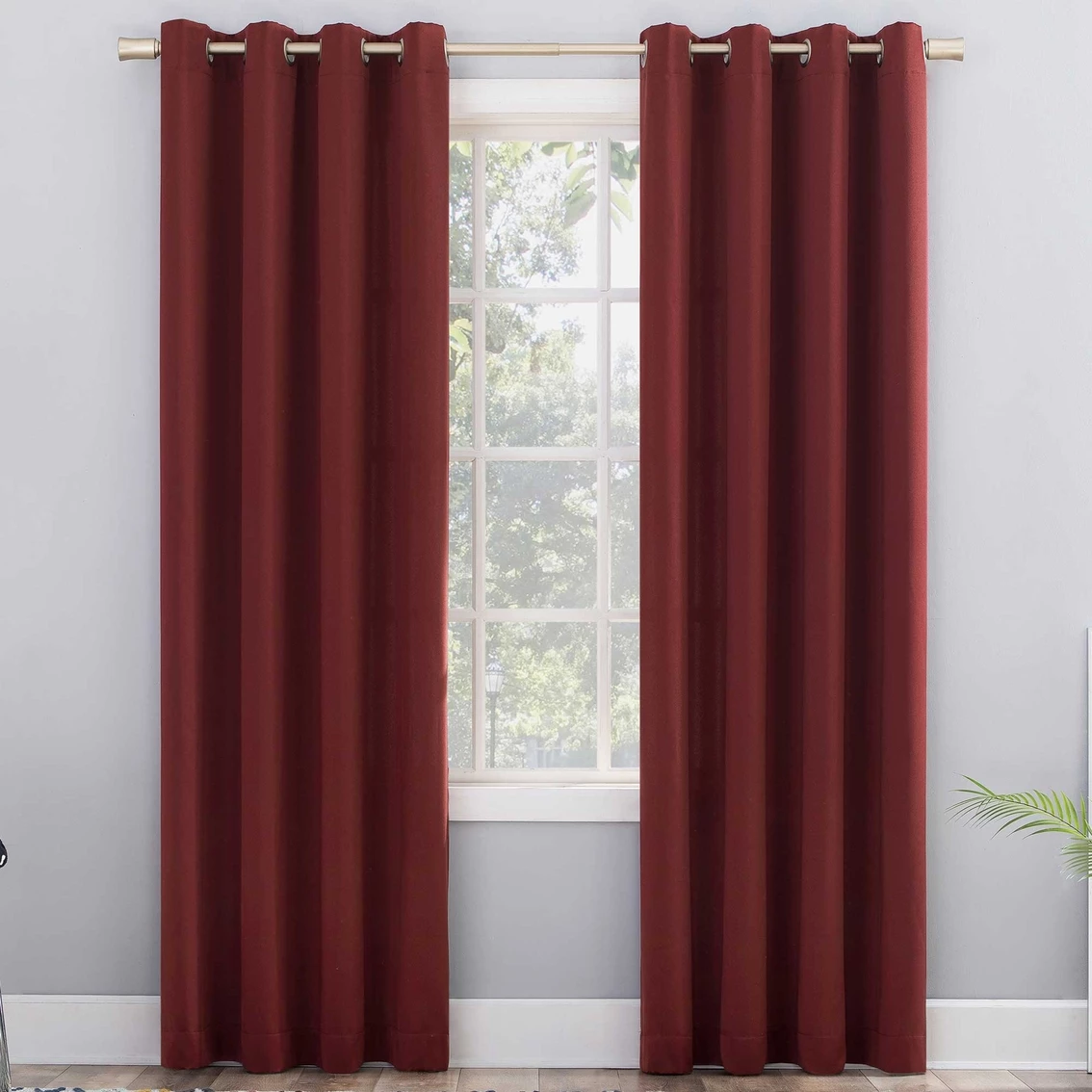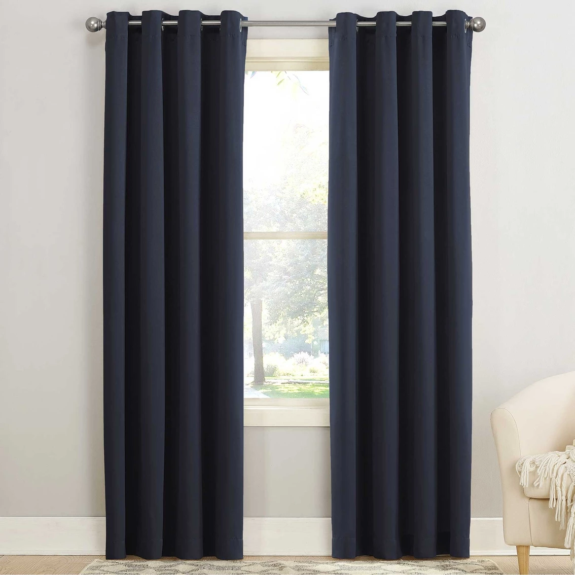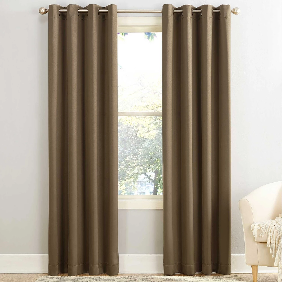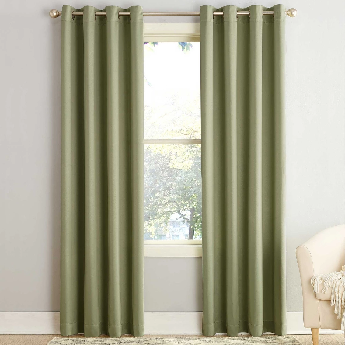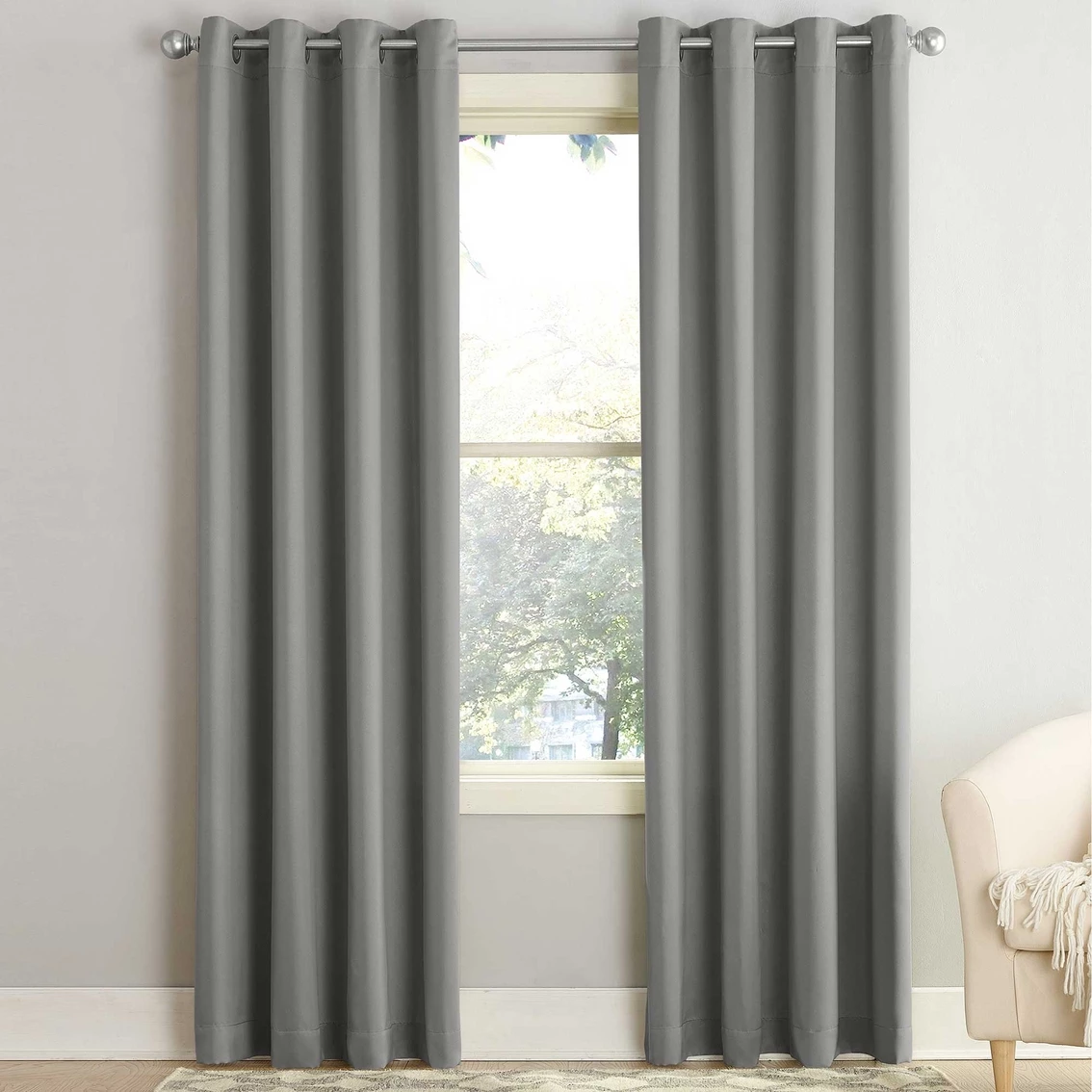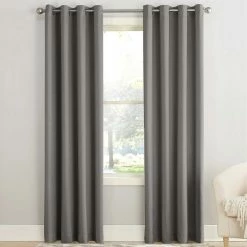 Sun Zero Gramercy Room Darkening Grommet Curtain Panel brings style and energy efficiency to any home. The woven solid design with an easy to hang grommet-top offers a classic style that fits in with any room decor while reducing light and noise for better sleep; help keep your home cooler in the summer and warmer in the winter. Curtain panel is made of materials that reduce light, and considerably darken the room. Some light will show through. These materials do not allow a view through and provide complete privacy. The darker the color the better the light reducing capabilities. Sold individually. Hang on a rod up to 1.5 inch in diameter. Polyester. Washable. Imported.