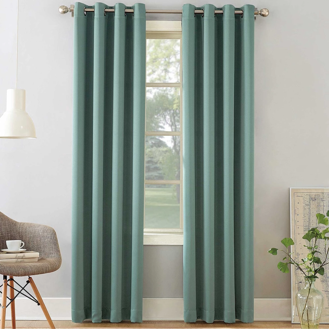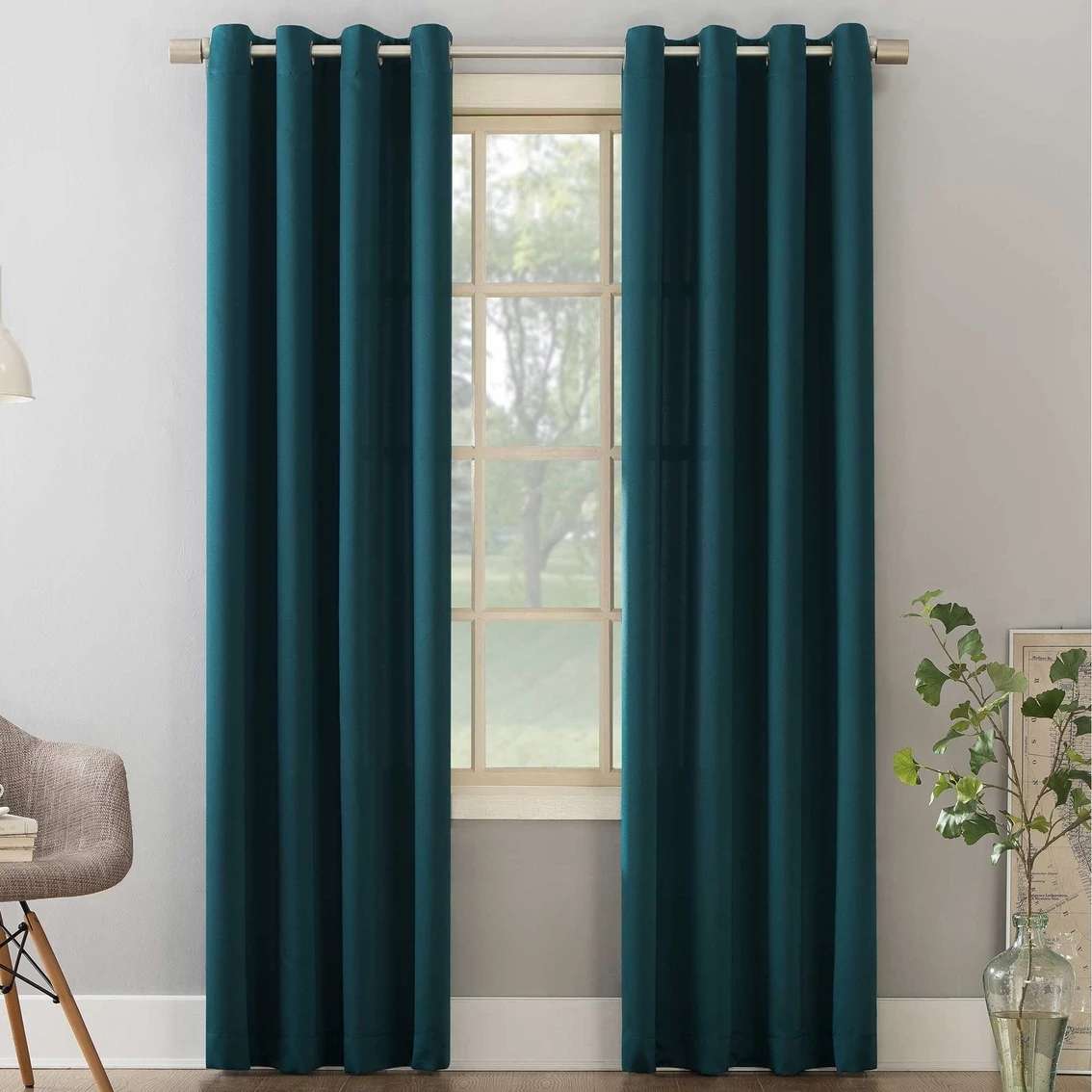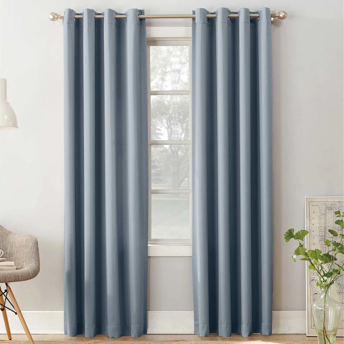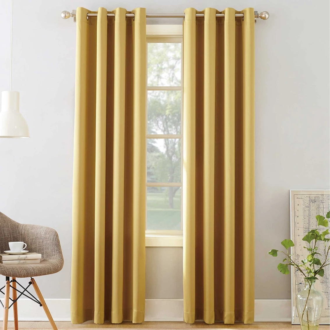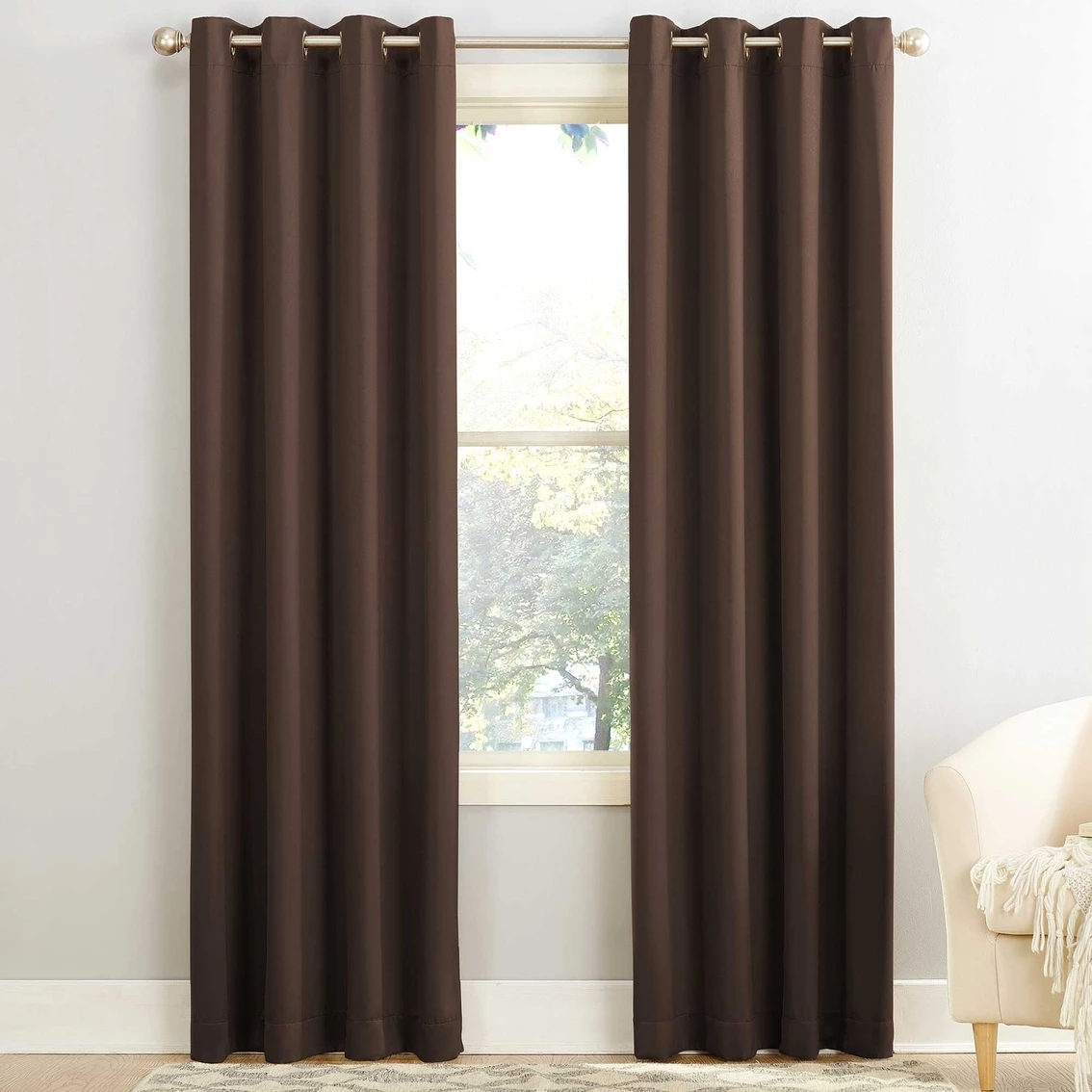 Sun Zero Gramercy Room Darkening Grommet Curtain Panel brings style and energy efficiency to any home. The woven solid design with an easy to hang grommet-top offers a classic style that fits in with any room decor while reducing light and noise for better sleep; help keep your home cooler in the summer and warmer in the winter. Curtain panel is made of materials that reduce light, and considerably darken the room. Some light will show through. These materials do not allow a view through and provide complete privacy. The darker the color the better the light reducing capabilities. Sold individually. Hang on a rod up to 1.5 inch in diameter. Polyester. Washable. Imported.
