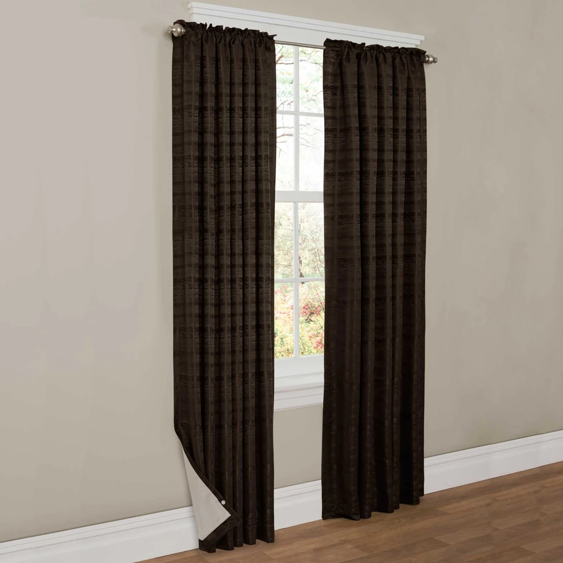 This fashionable and innovative room darkening window curtain’s side shield design with Velcro dots stops 99% of light from leaking into your room and saves up to 45% more energy compared to traditional blackout panels. The blackout curtain insulates your room, reduces noise from outside and offers 3-sided blackout functionality when paired with a second panel (sold separately). Use the attractive ivory curtain in living rooms, bedrooms, nurseries to create privacy, prevent glares and for daytime sleeping. It features a rod pocket top for easy installation using any standard, decorative or continental curtain rod. The curtain is machine washable. Model: 5173.